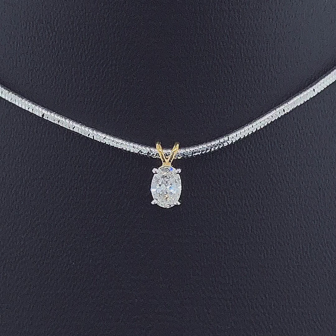 This versatile oval solitaire pendant elevates any ensemble: